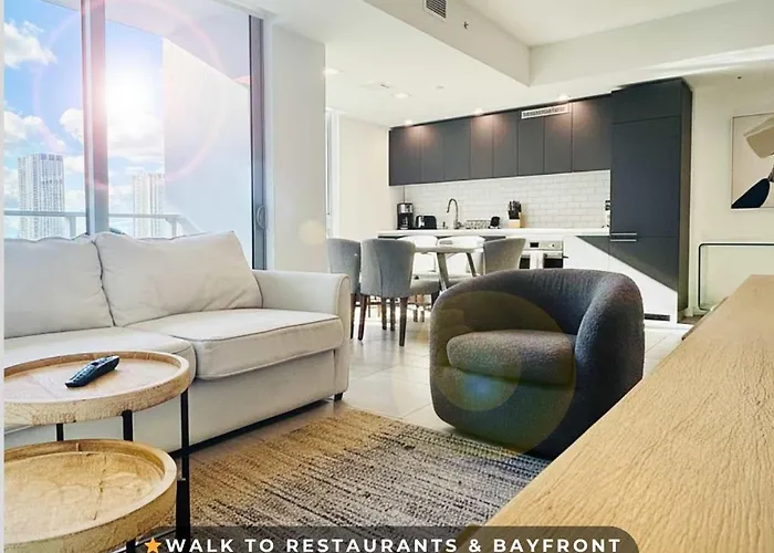 Die 1-Zimmer- Villa Rare Corner Unit Private Terrace & Sunset Views Miami liegt in einer 500 Meter Entfernung vom Bayside Shopping Mall und bietet allen Gästen einen Dachpool und eine Terrasse.